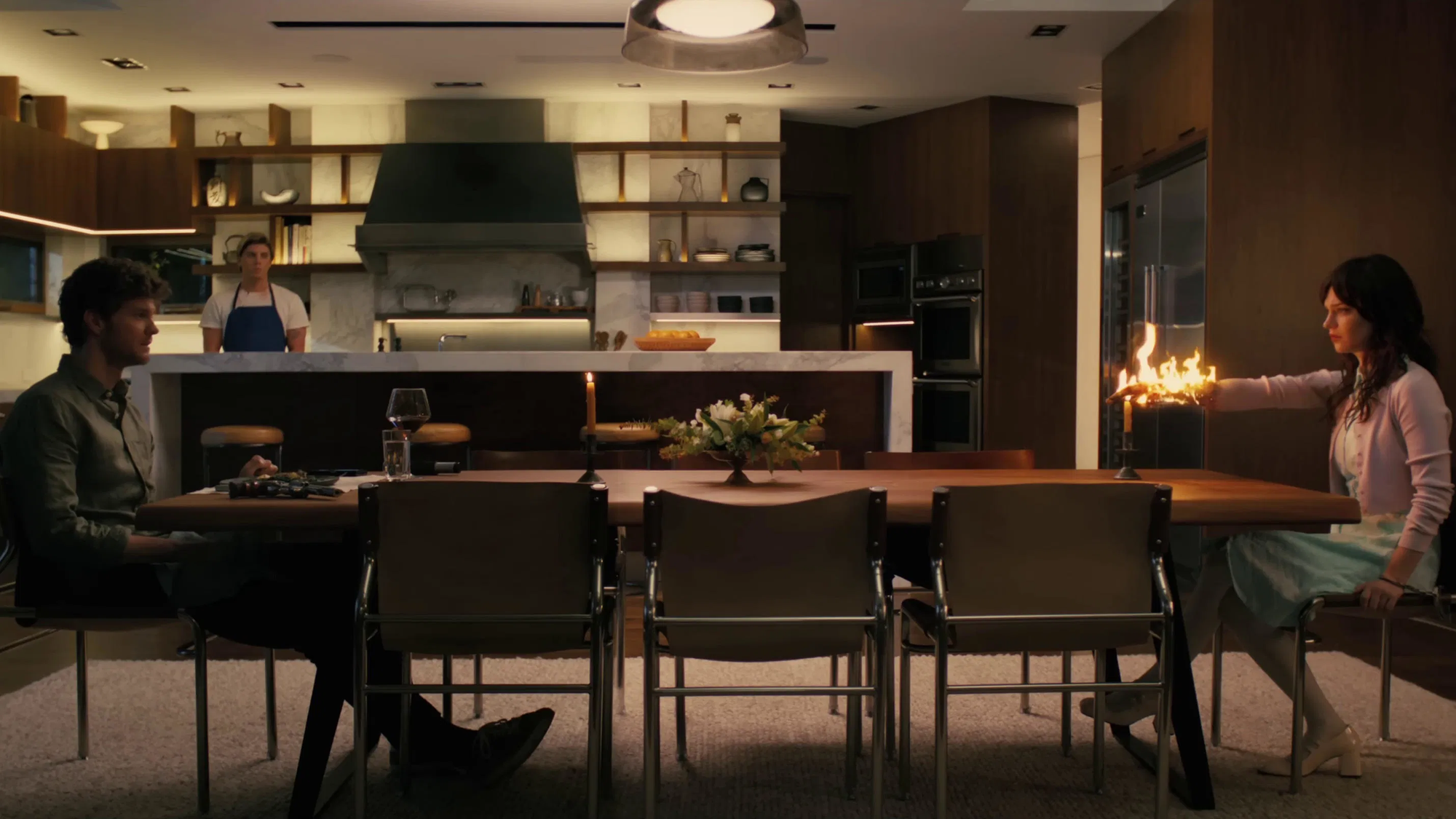 From the moment Iris and Josh show up at his friend's vacation home, everyone is a bit stand-offish towards Iris despite her intensely pleasant disposition. It gets increasingly aggressive, eventually resulting in a shocking death, which unravels the entire situation, laying bare its themes of control and sexism and the complications of modern dating.